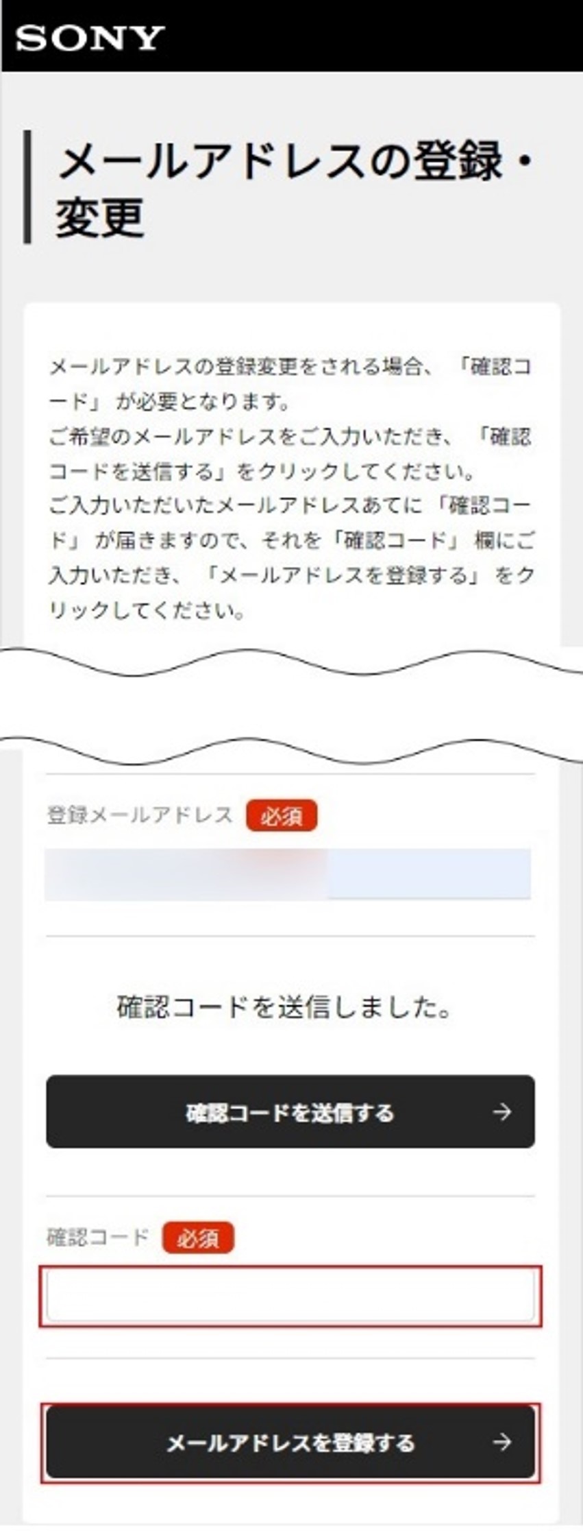 STEP2 メールアドレス登録画面でメールアドレスを入力し、「確認コードを送信する」を押してください