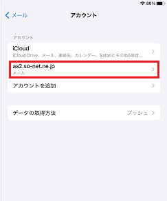 STEP8 「アカウントとパスワード」の画面に戻りましたら、新しく追加したアカウントを選択します