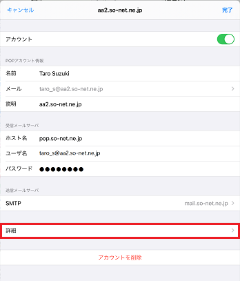 - 「説明」: [メールアドレス] 例)taro_s@aa2.so-net.ne.jp