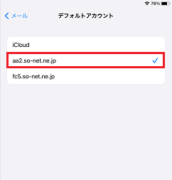 STEP1 「メール」の画面で、「デフォルトアカウント」を選択します