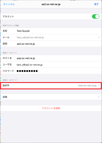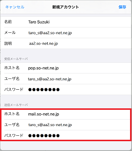 - 「メール」: [メールアドレス] 例)taro_s@aa2.so-net.ne.jp