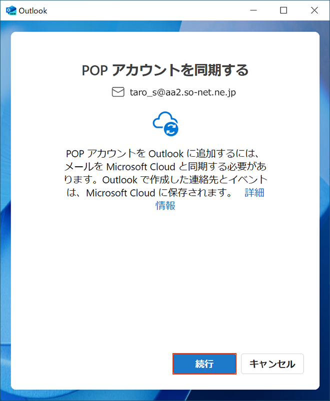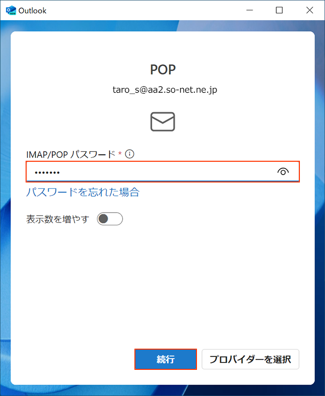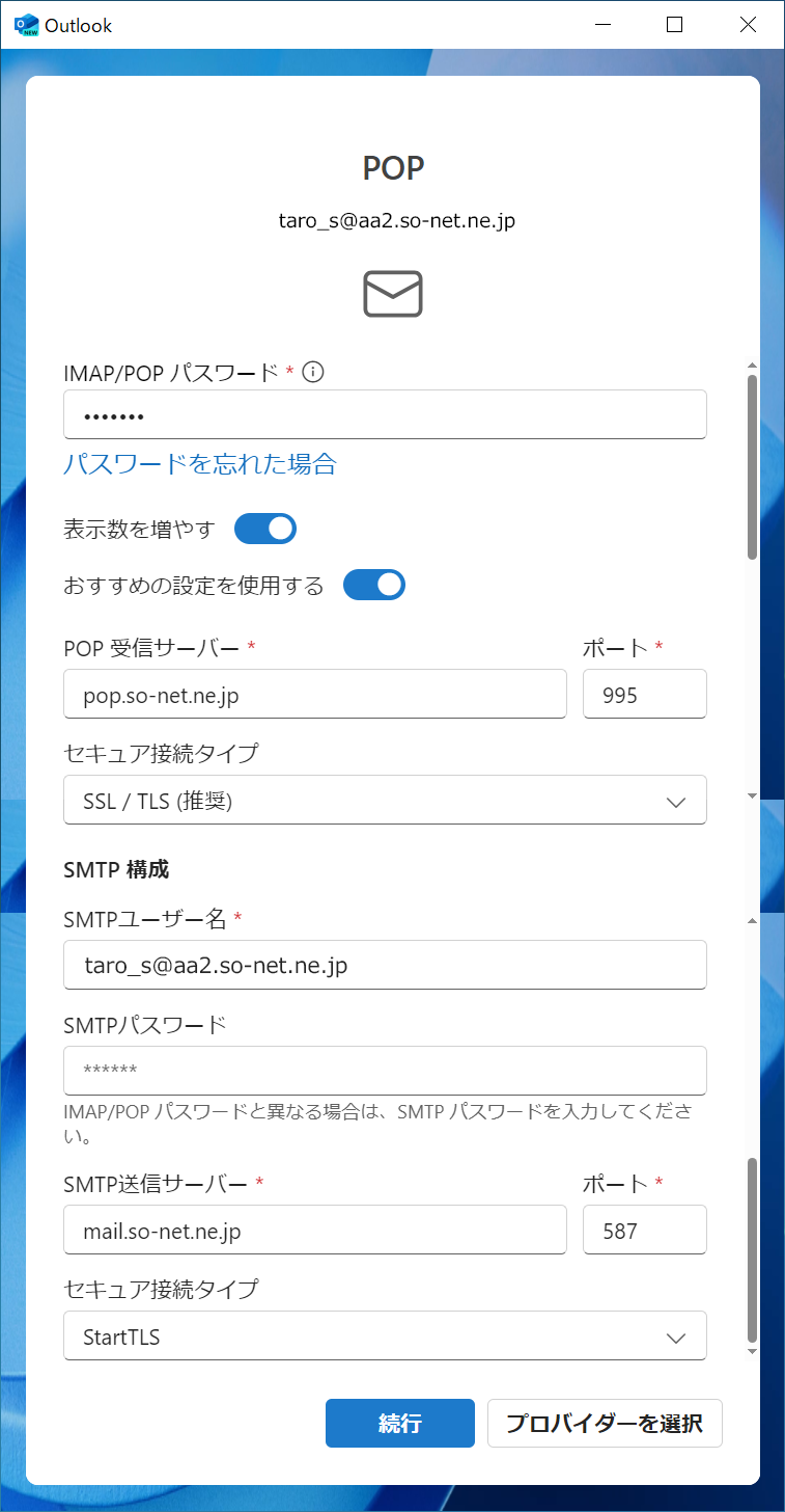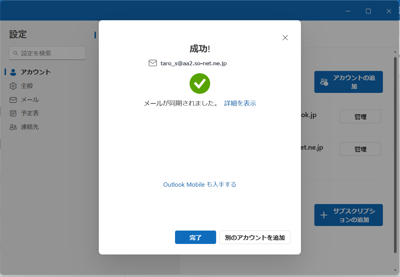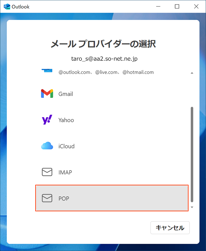 ※ IMAP サービスをご利用の場合は 「IMAPでのメール新規設定方法を知りたい(Windows 10「メール」アプリ」 をご参照ください。
