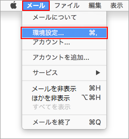 STEP2 メニューバーの「メール」から「環境設定...」を選択します