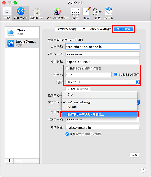 - 「ユーザ名:」:[メールアドレス] 例)taro_s@aa2.so-net.ne.jp