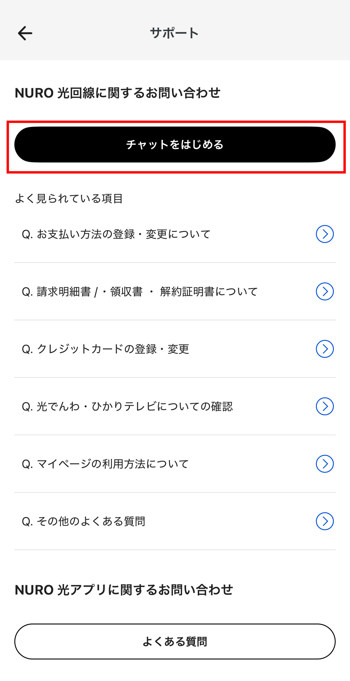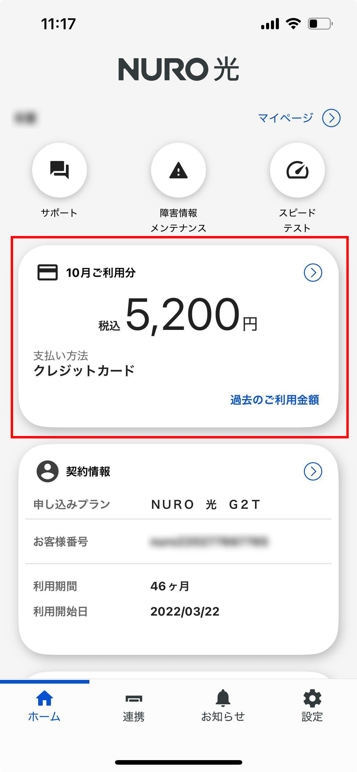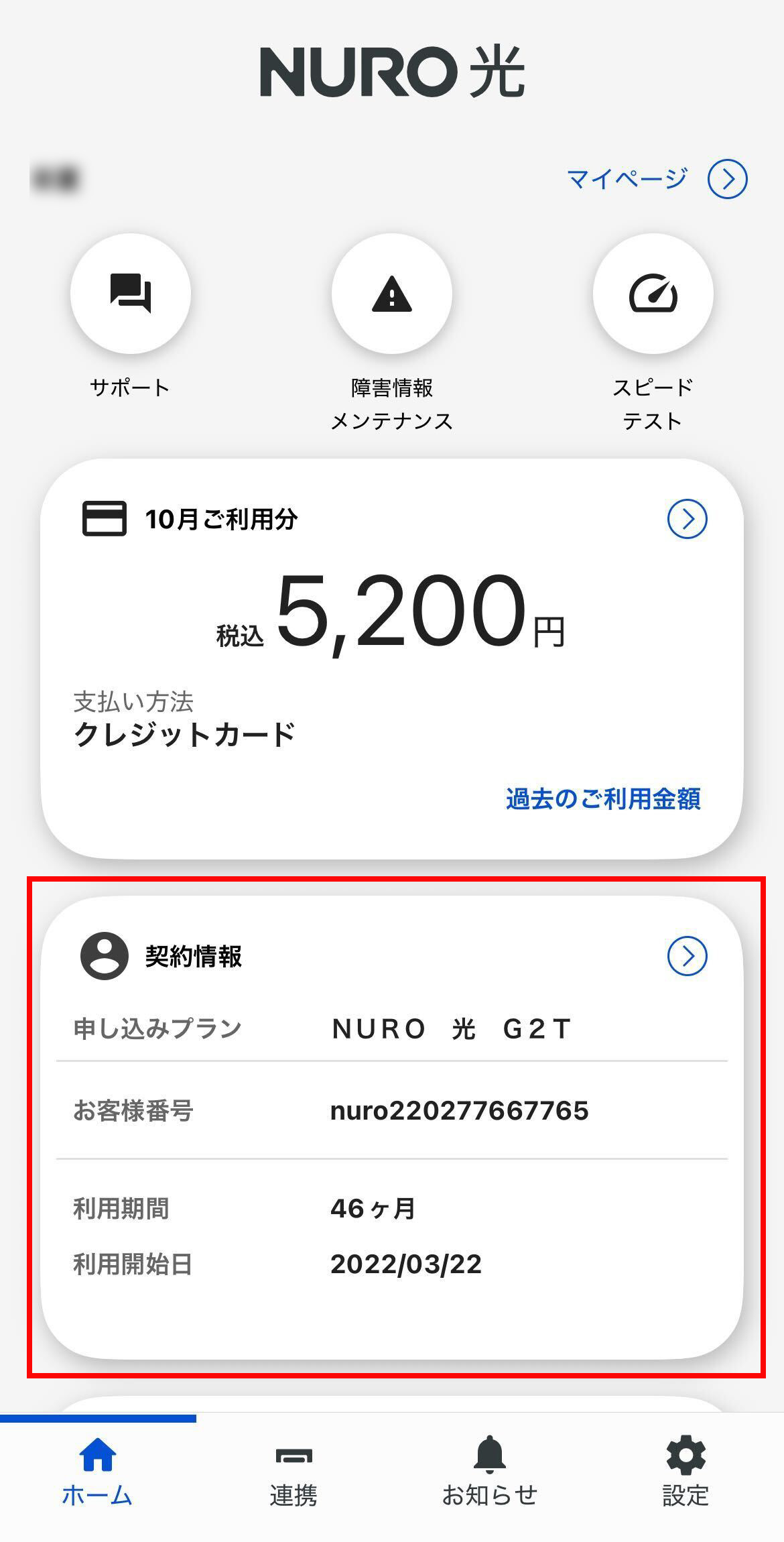 STEP1 NURO 光アプリホーム中央の「契約情報」をご確認ください