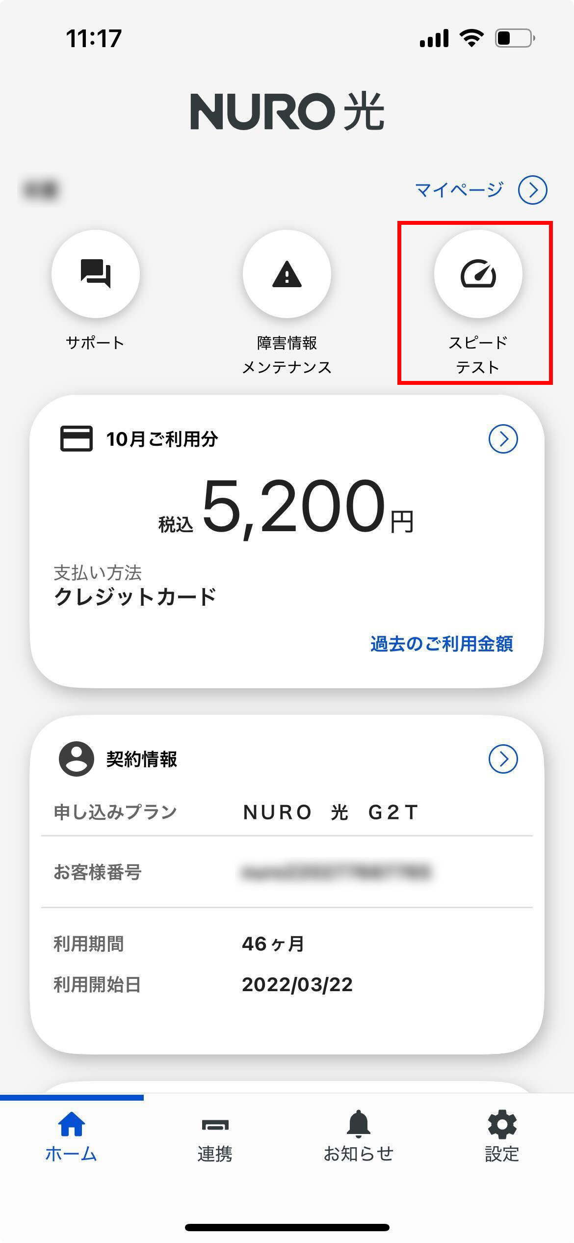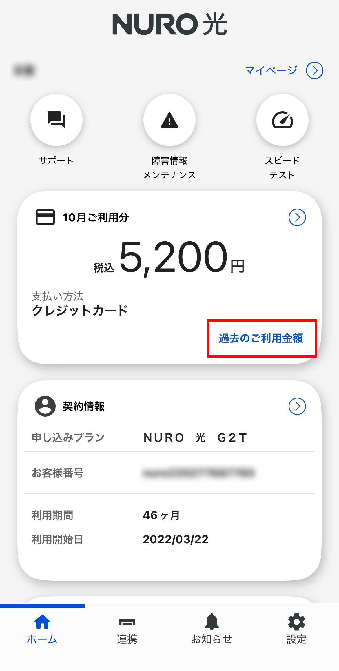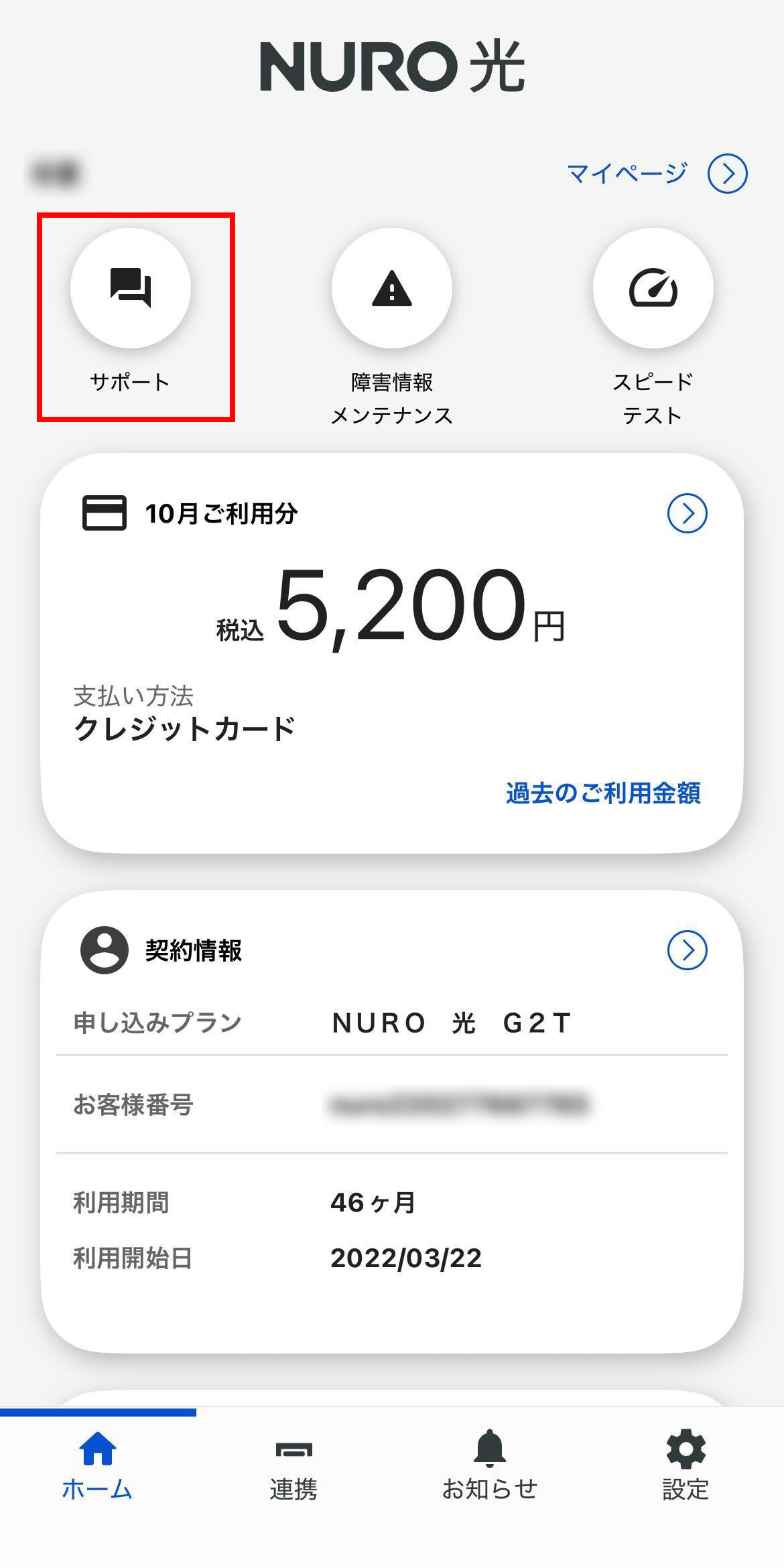 「NURO 光アプリ」は毎月の料金や契約情報、スピードテストやサポート機能など、NURO 光をご利用いただく中での便利な機能が集約されているアプリです。