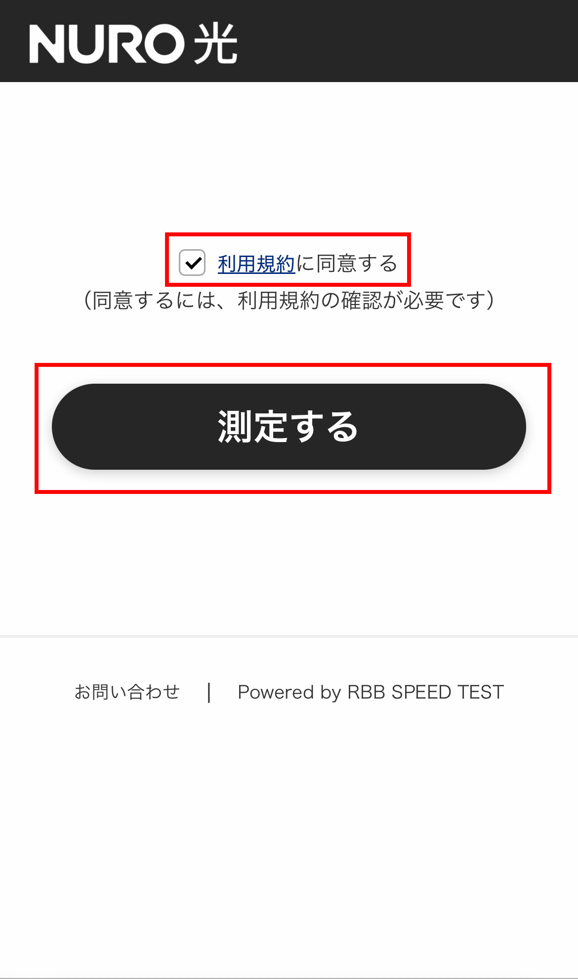ご利用規約に✔を入れ「測定する」ボタンをタップすると、速度計測結果が表示されます。