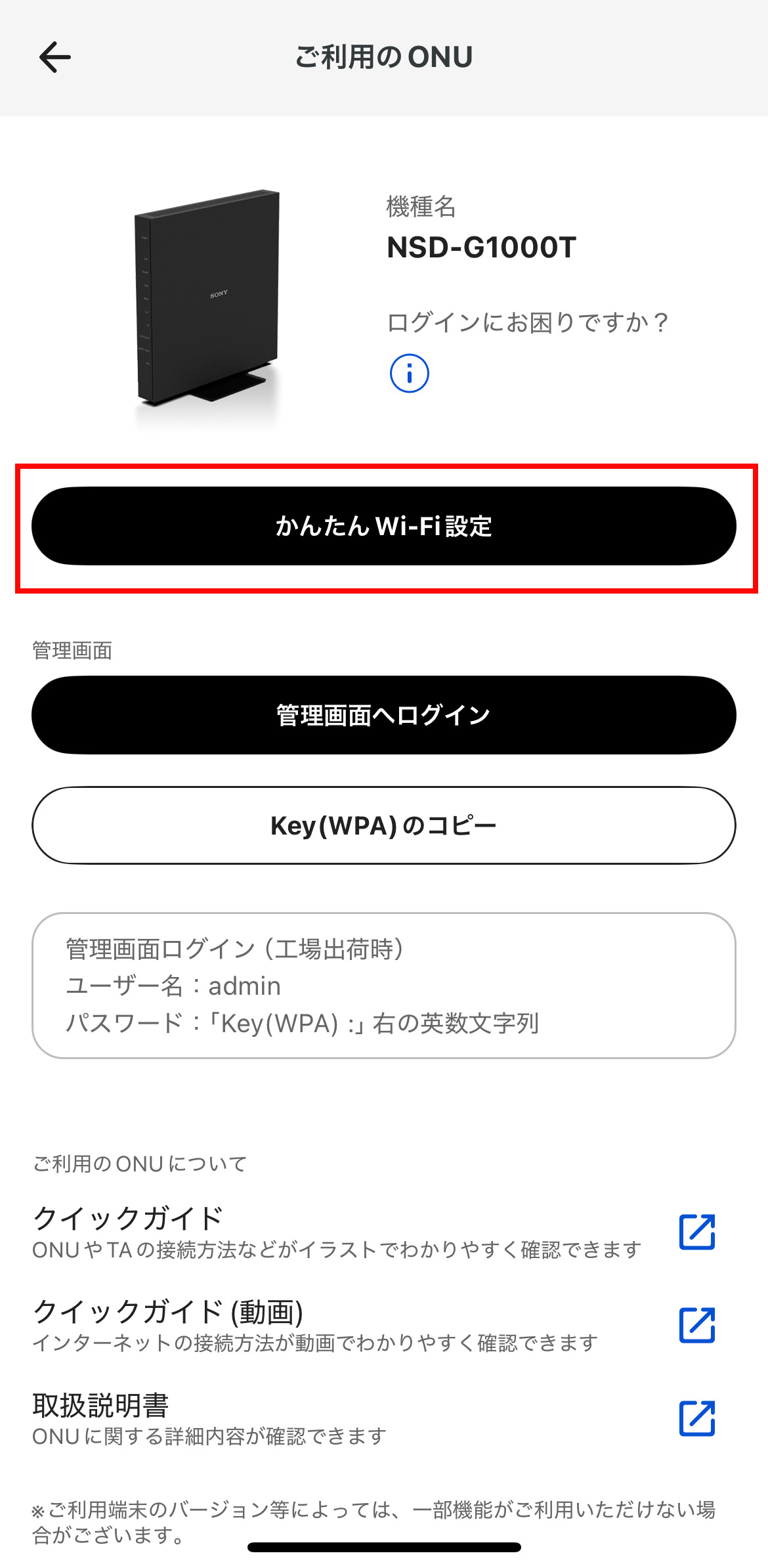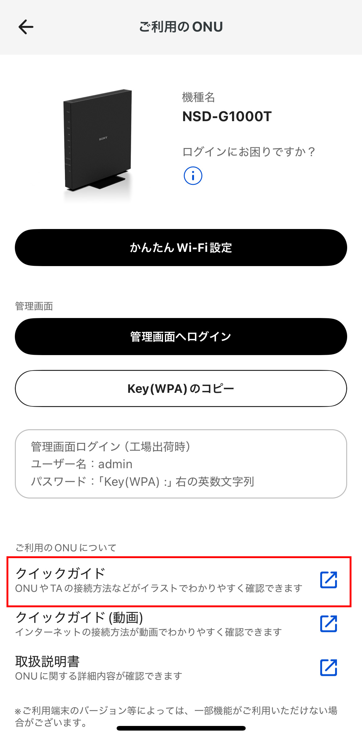 STEP2 ONU カード内の「クイックガイド」をタップします
